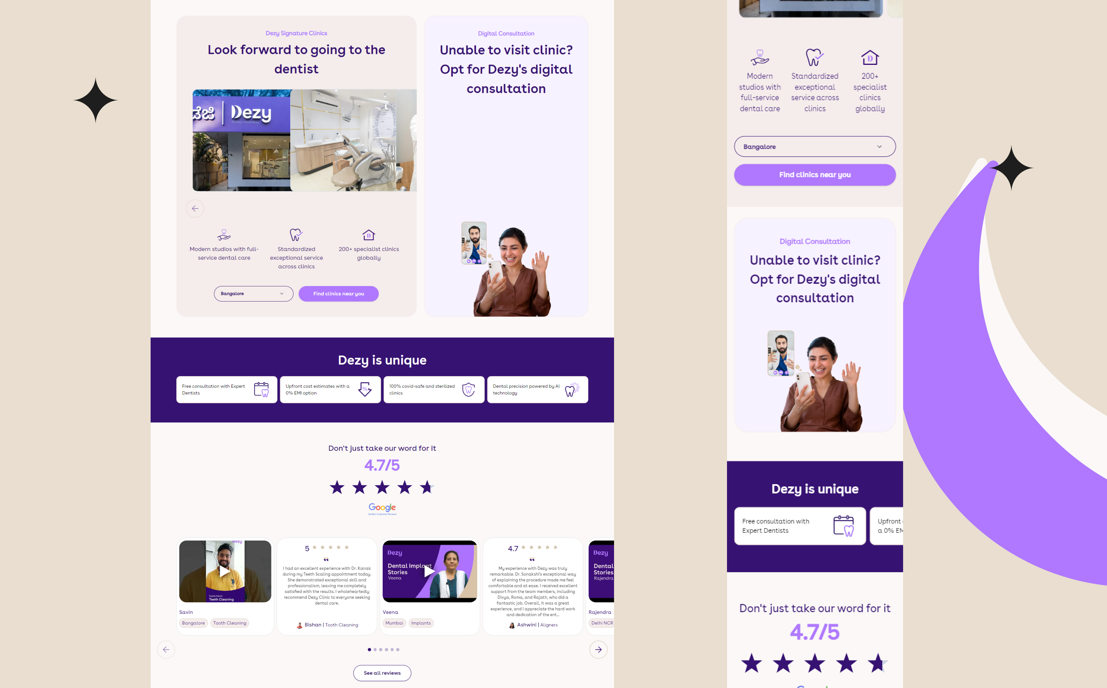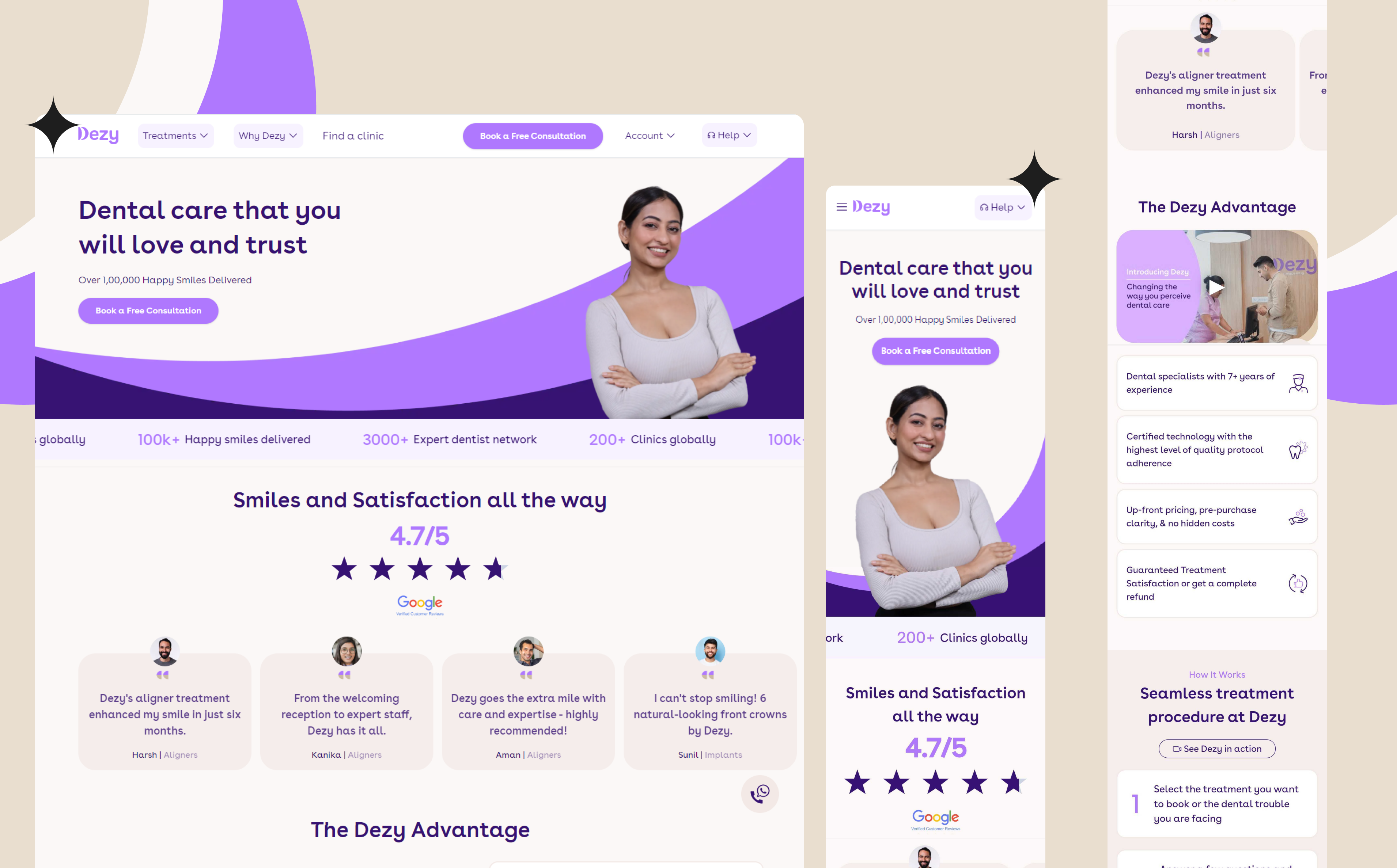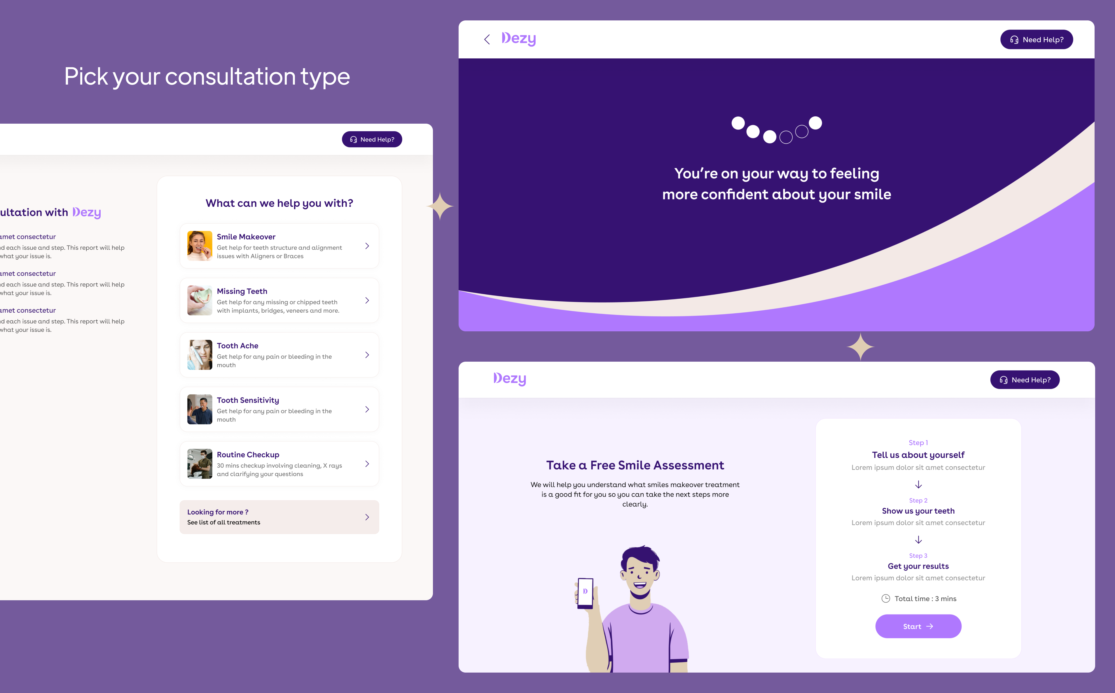 Dezy is an O2O (Online to Offline) dental care provider that offers all dentistry services. Vetted doctors, transparent communication and anxiety-free consultation are the core principles of their desired user experience.