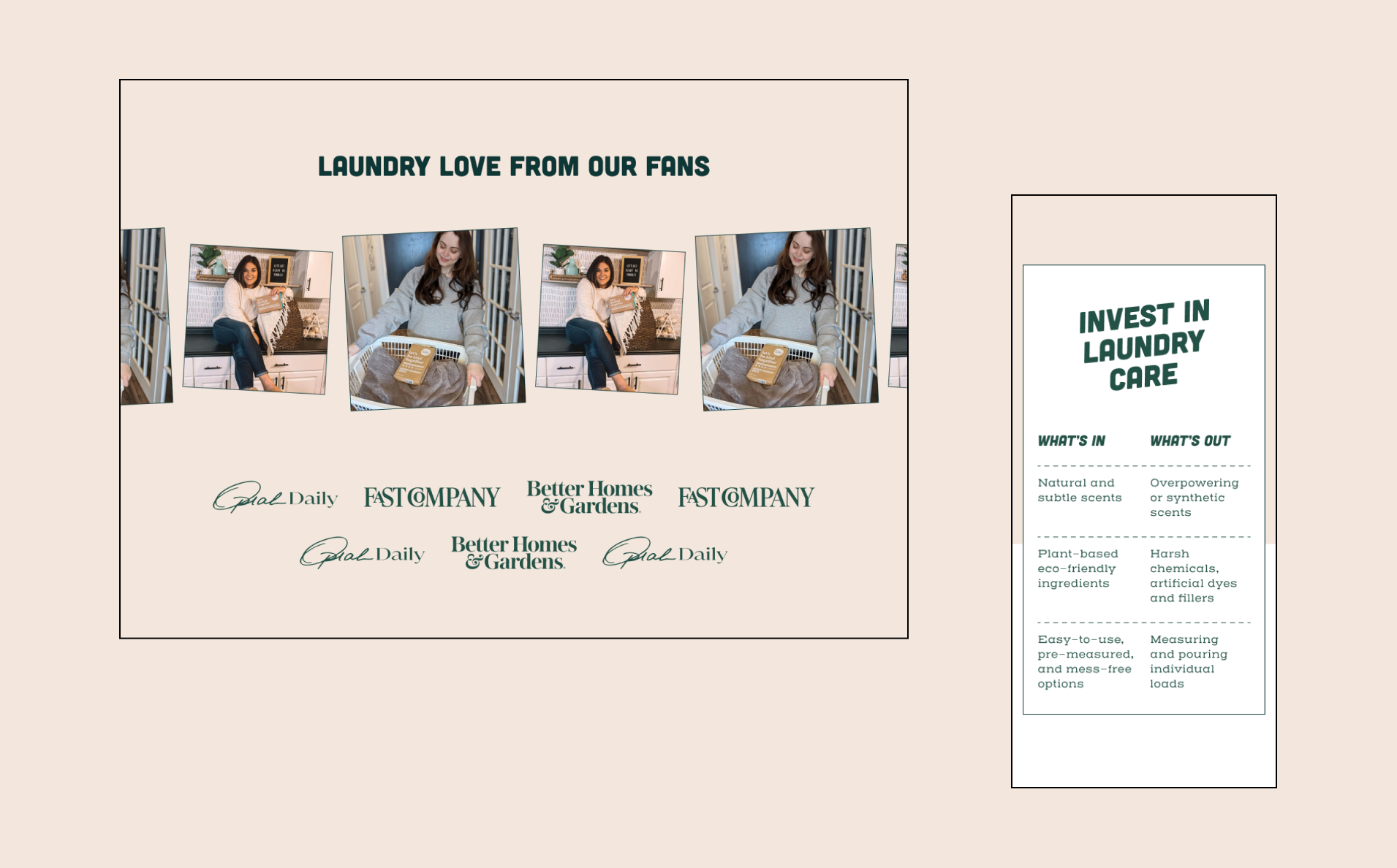 Eco-friendly was 2020. Uplifting individual identity + Eco-friendly is better today. That was our vision of the new homepage. How do we anchor self-care as the brand message? This should say it.