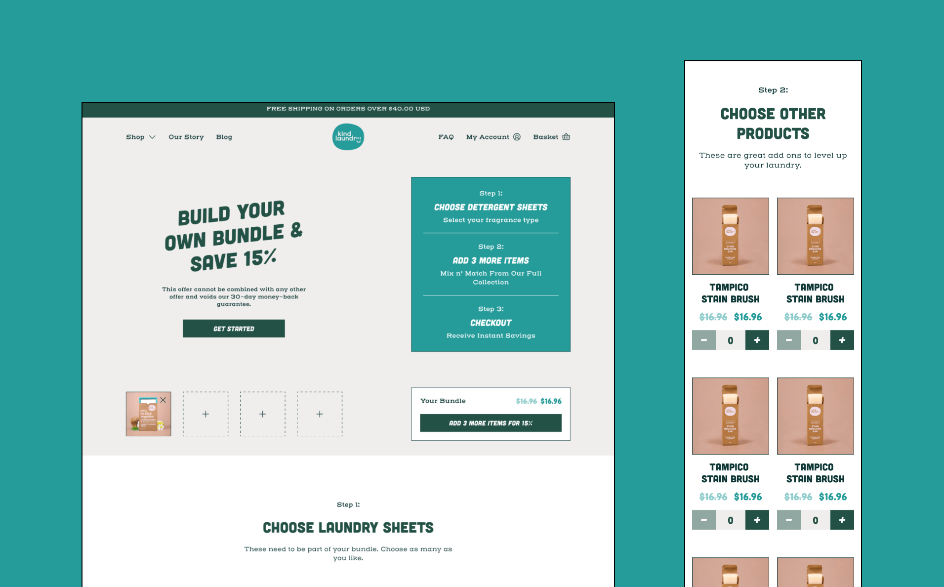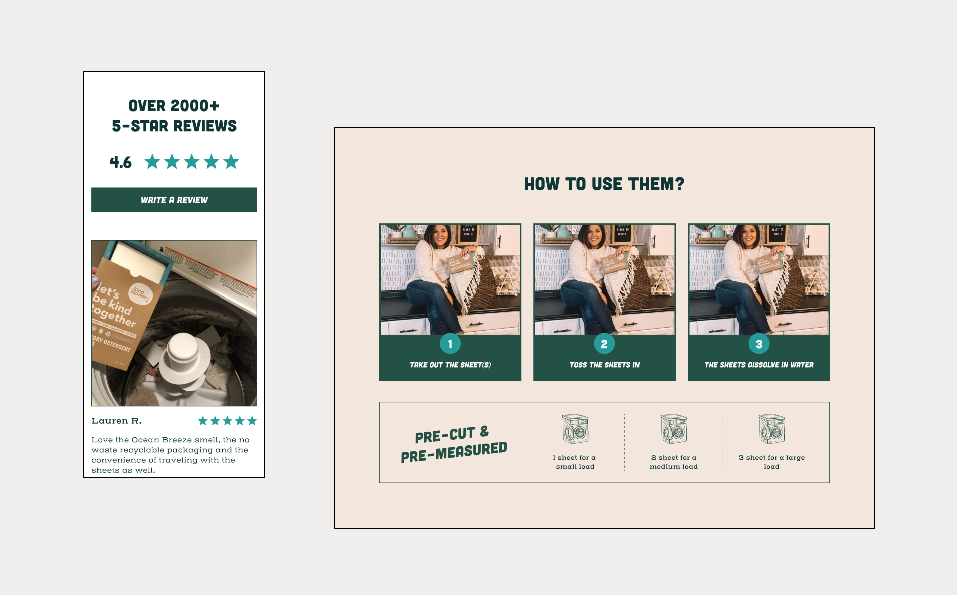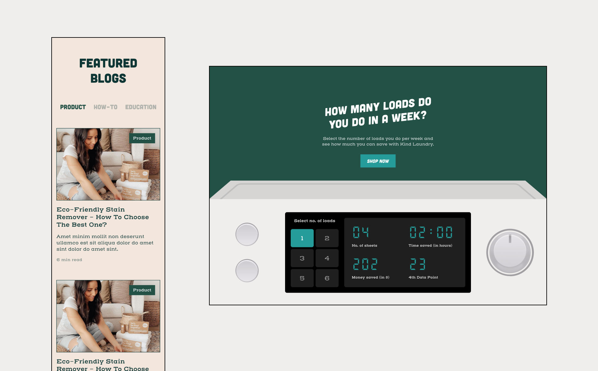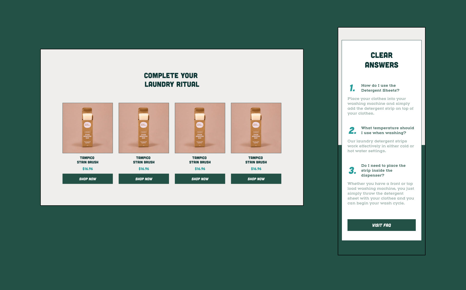 Laundry is not a one time need. So we imagined a design to drive the user to different commitment options beyond a straight forward first try - One Time Purchase, Subscription, Travel Size.