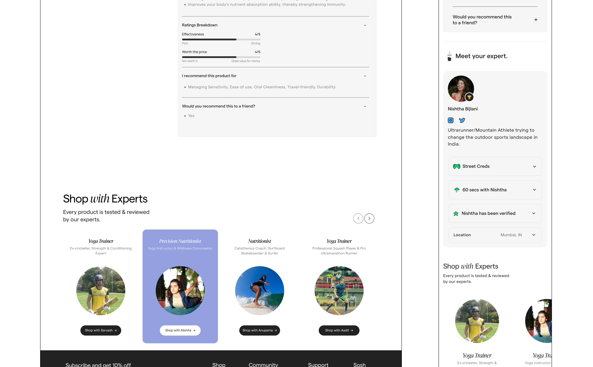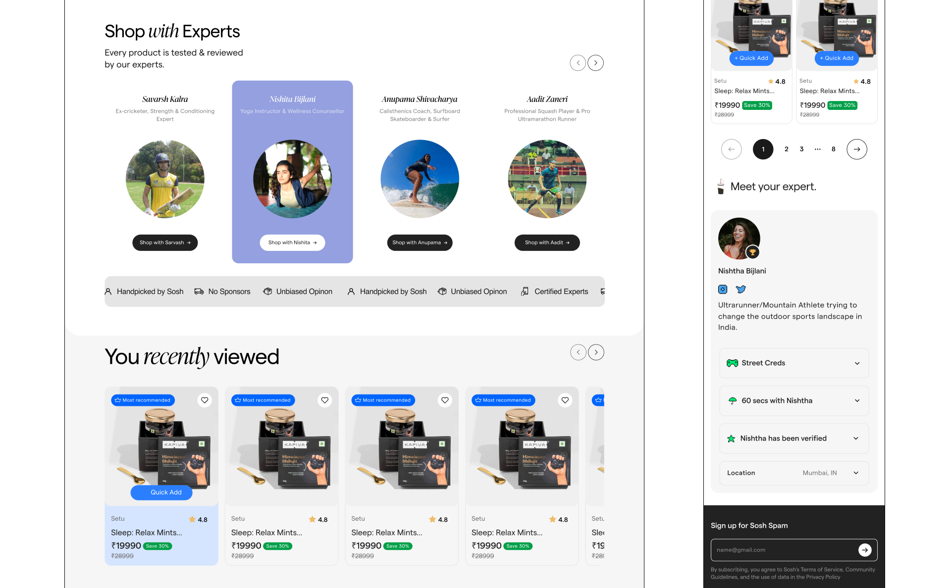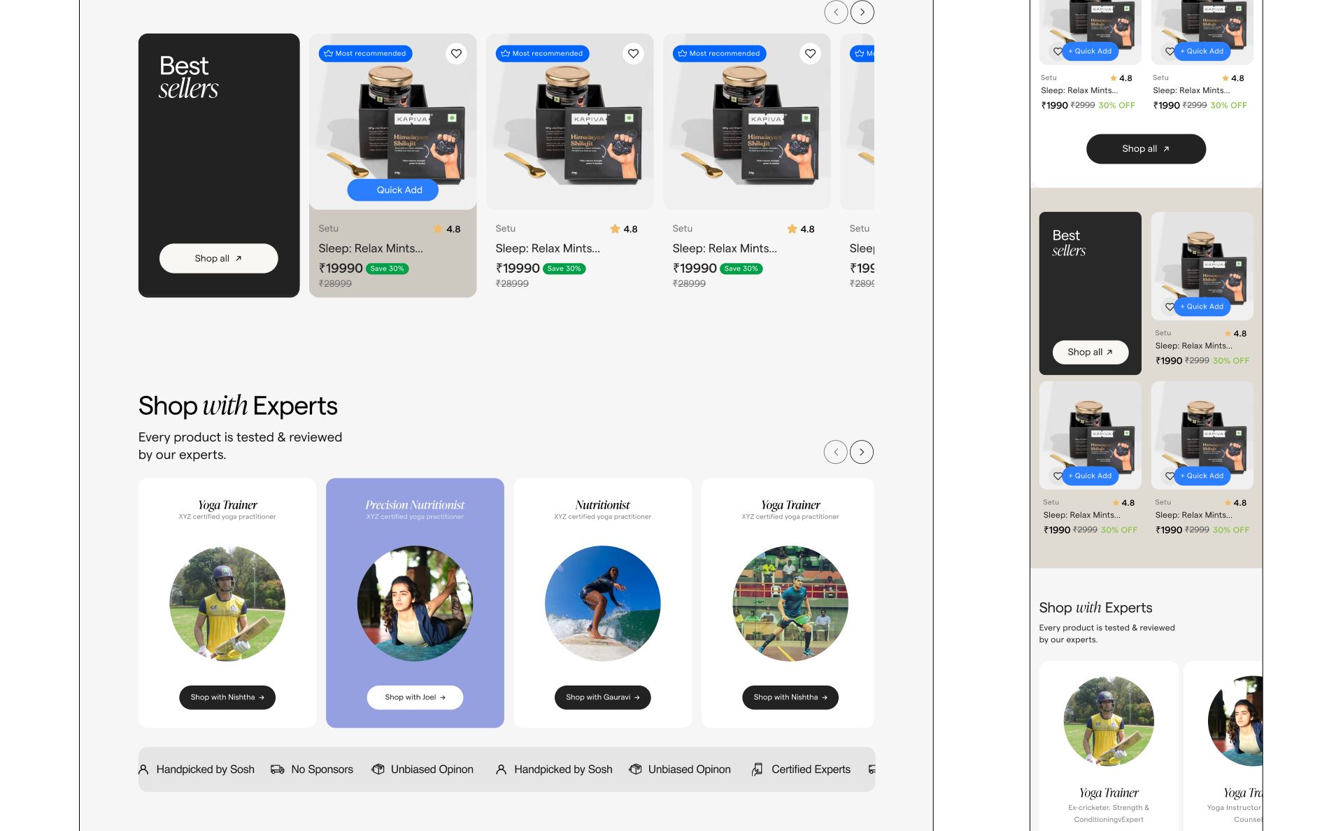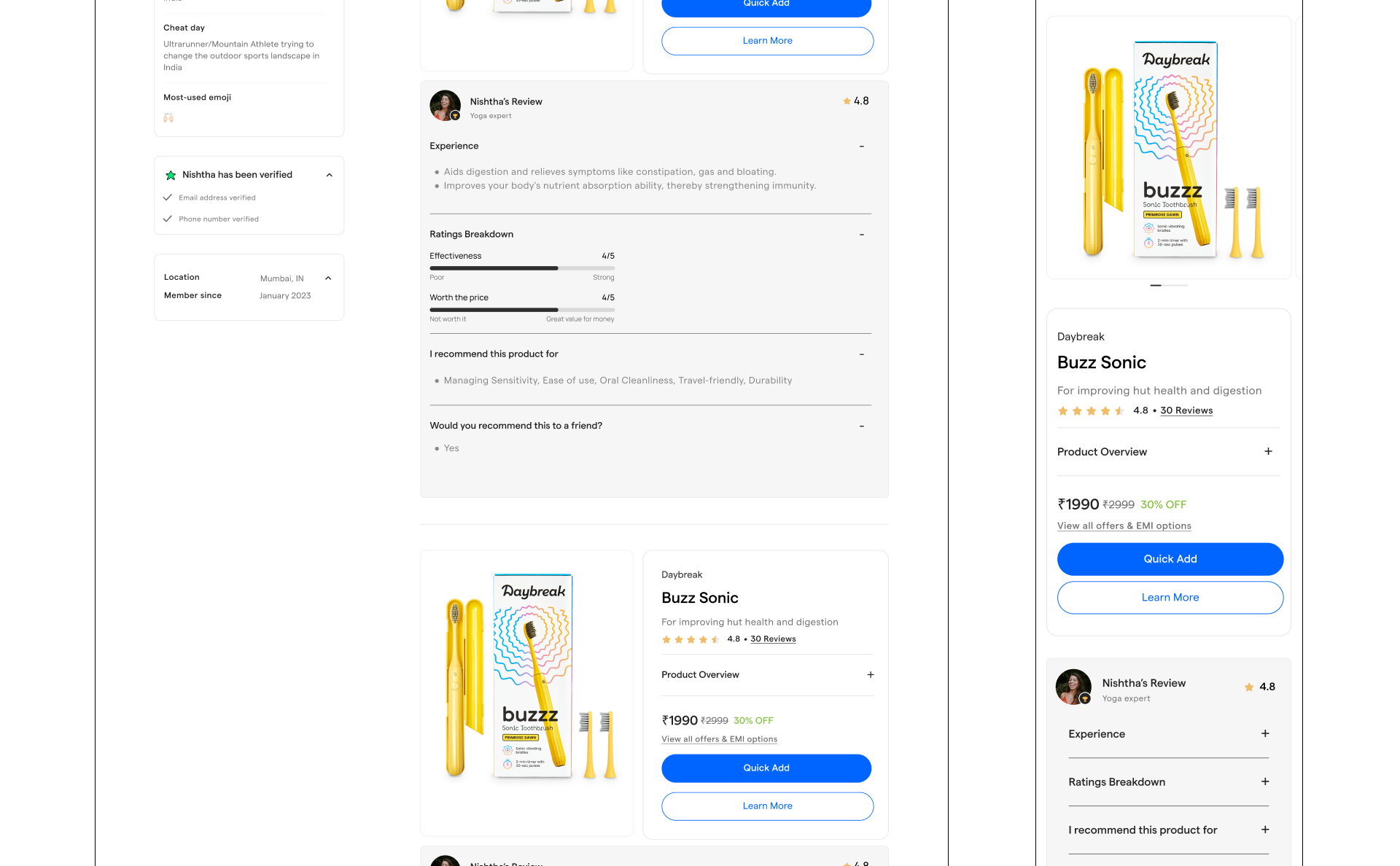 Product’s core design principle is to build for trust and enable discovery of products that are uniquely right for the customers. We achieved that by optimising for setting context in your shopping journey. We designed a unique shopping experience where you can shop with real experts. We studied other marketplaces and went 180 deg. in our approach where our north star metric was accuracy in decision making for customers. That means extremely order returns, high customer loyalty and a massive boost in retention.