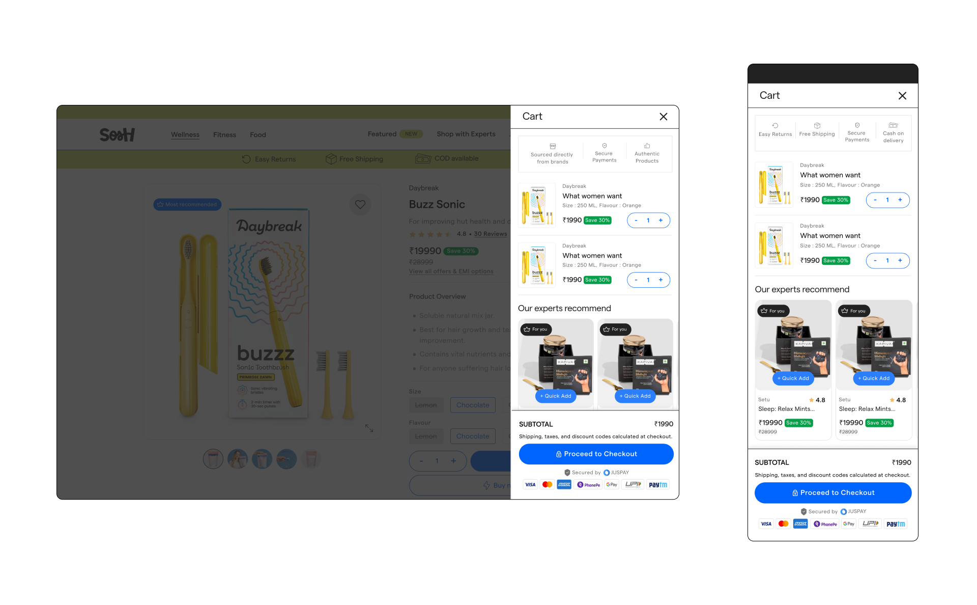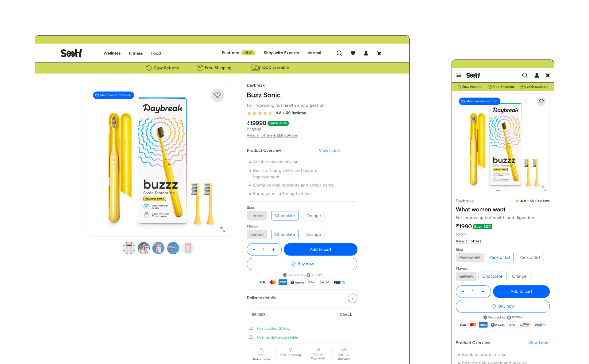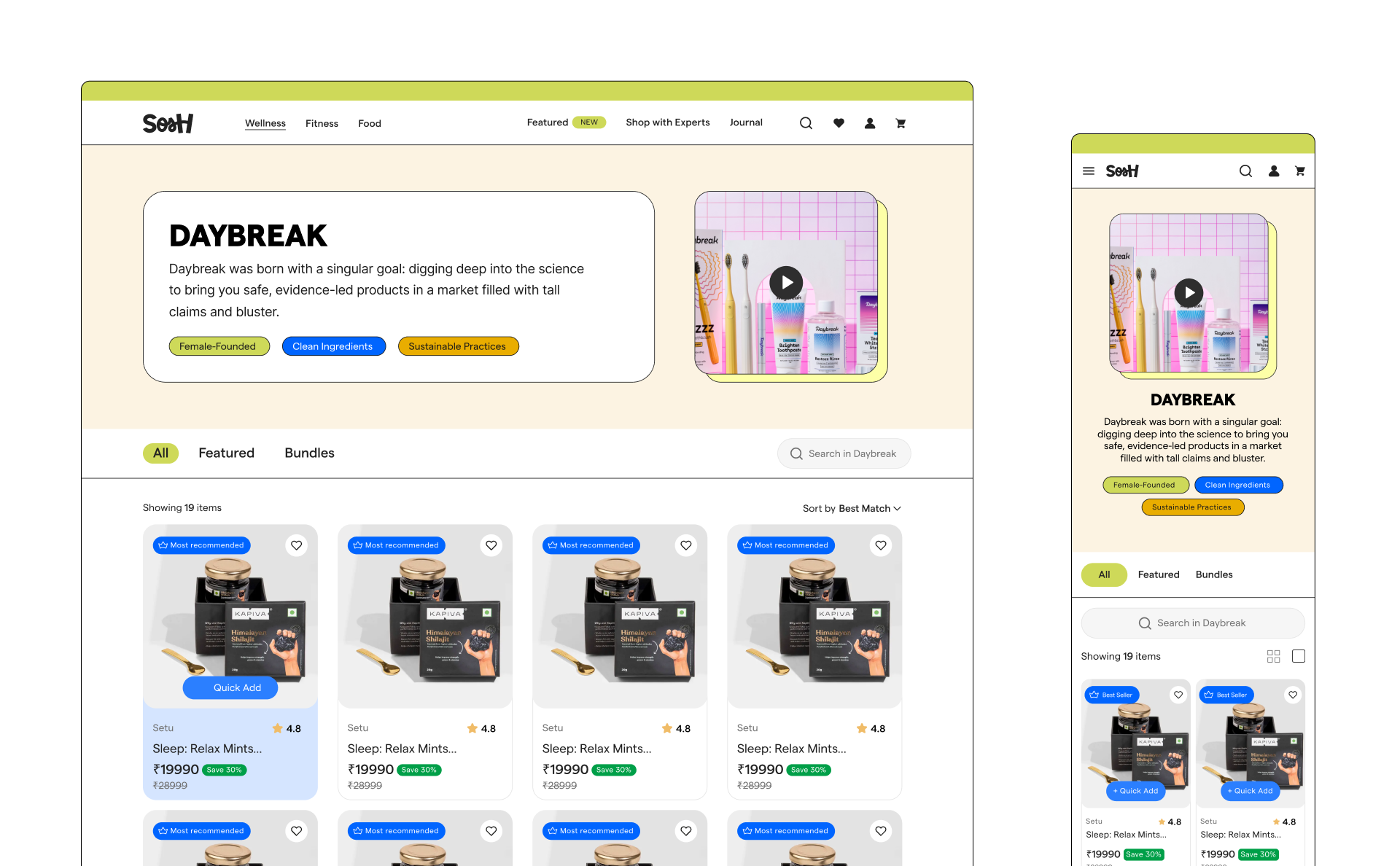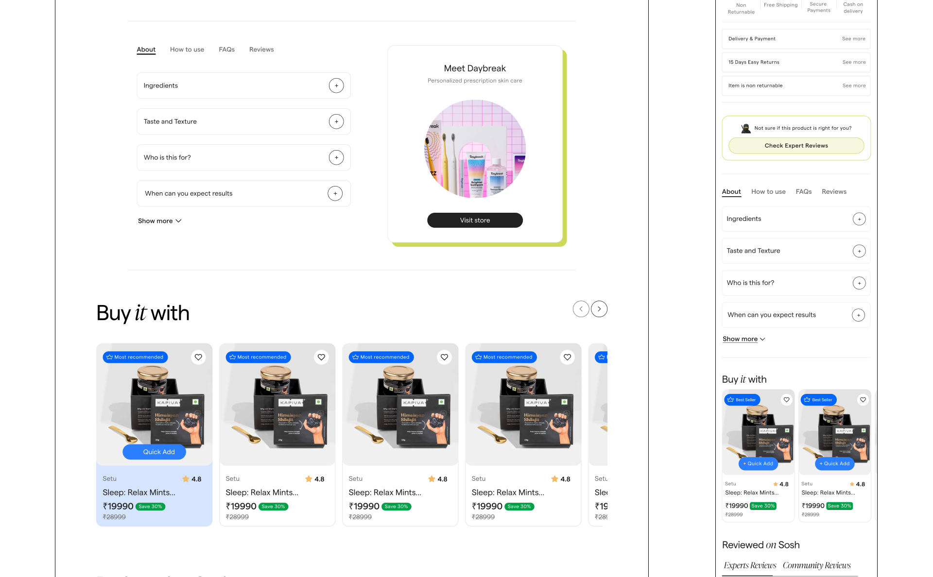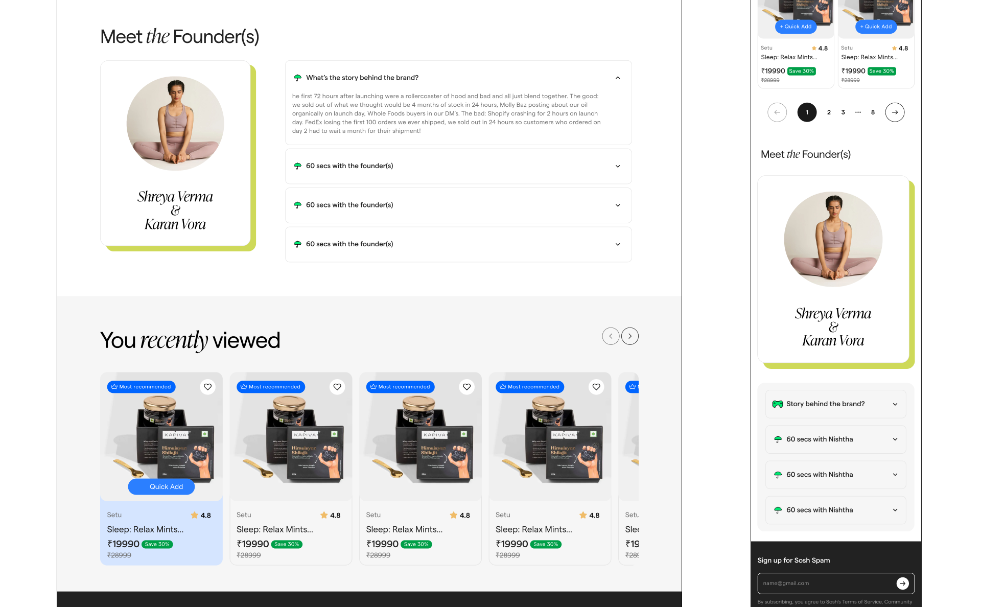 Product’s core design principle is to build for trust and enable discovery of products that are uniquely right for the customers. We achieved that by optimising for setting context in your shopping journey. We designed a unique shopping experience where you can shop with real experts. We studied other marketplaces and went 180 deg. in our approach where our north star metric was accuracy in decision making for customers. That means extremely order returns, high customer loyalty and a massive boost in retention.